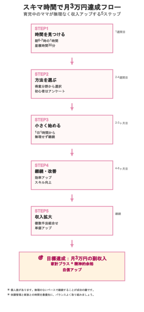 育児中でもスキマ時間を活用して月3万円の収入を得ることは十分可能です。大切なのは、無理をせず自分のペースで継続することです。
